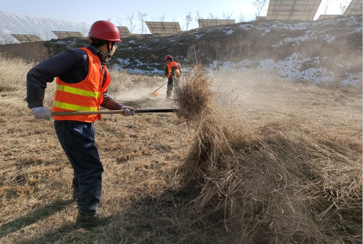 為進(jìn)一步保障電站安全運(yùn)營環(huán)境,從源頭消除火災(zāi)隱患,11月1日—12月28日,臨洮電站開展了為期五十八天的光伏區(qū)雜草治理工作,全面清除光伏區(qū)周邊雜草一百二十余萬平方米、修剪樹木千余棵。