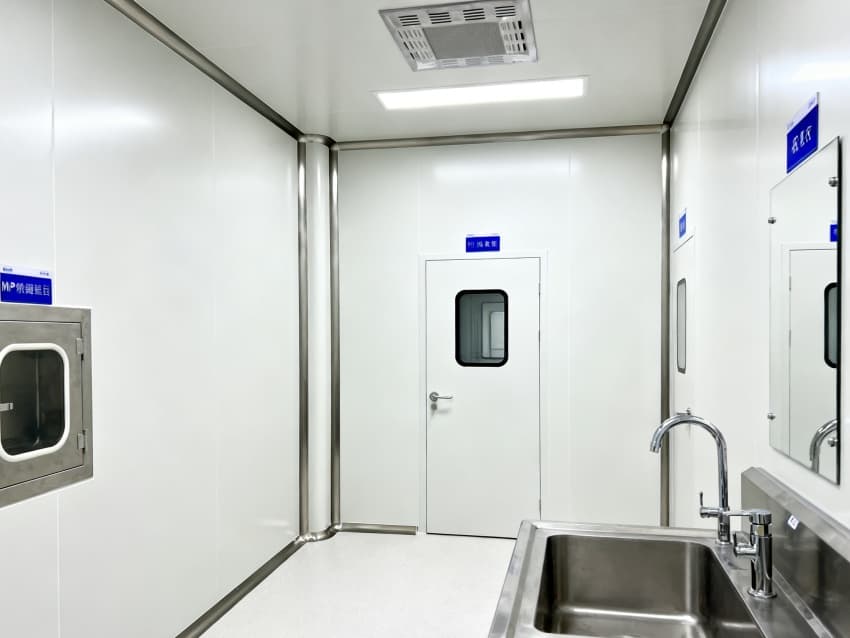 核心區(qū)域的潔凈度達(dá)到了萬(wàn)級(jí)標(biāo)準(zhǔn),也就是ISO8級(jí)。簡(jiǎn)單來(lái)說(shuō),每一立方米空氣里,直徑0.5微米及以上的顆粒,不會(huì)超過(guò)352000個(gè)。我們裝了初效、中效、高效三級(jí)空氣過(guò)濾系統(tǒng),再配上垂直層流送風(fēng),這樣每小時(shí)能換20到25次空氣。?
