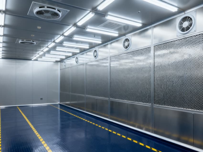 車間的干凈程度達到萬級標準(相當于國際標準ISO8級),每立方米空氣里,直徑0.5微米以上的灰塵顆粒不會超過352000個。我們用初效、中效、高效三層過濾網(wǎng)過濾空氣,再搭配頂部送風、底部回風的設計,每小時能把車間空氣換新20到25次。墻面用的是不容易吸附灰塵、能抗靜電的彩鋼板,地面鋪著耐磨的環(huán)氧樹脂材料,所有拼接的地方都做了密封。車間里的溫度一直保持在21℃到25℃之間,濕度控制在40%到50%,還專門安裝了防靜電設備,這樣就能防止灰塵和靜電影響新能源產(chǎn)品的質(zhì)量,讓生產(chǎn)出來的東西更可靠。