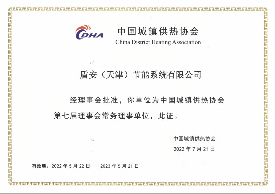 水發(fā)盾安(天津)節(jié)能系統(tǒng)有限公司當選中國城鎮(zhèn)供熱協(xié)會第七屆理事會常務理事單位