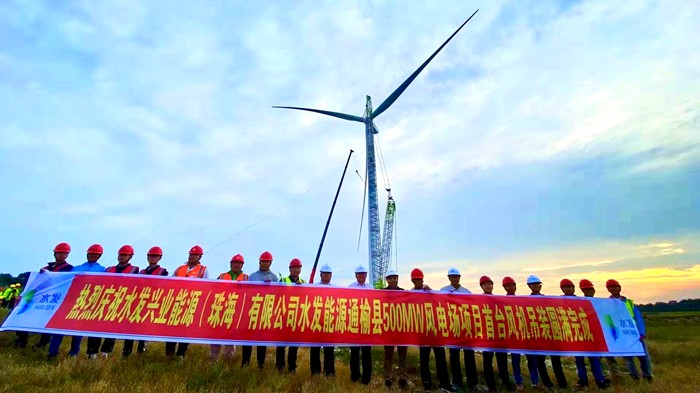水發(fā)能源通榆縣500MW風(fēng)電場首臺風(fēng)機順利吊裝完成 項目建設(shè)全面進(jìn)入安裝施工階段